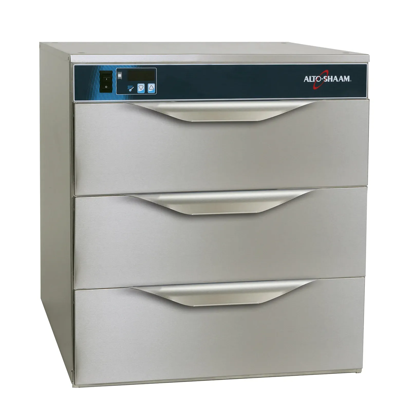 Cook with precision using the Alto-Shaam 500-3D Warming Drawer. This free-standing drawer is designed to keep your food warm and ready to serve, making it a valuable addition to any commercial restaurant. With three spacious drawers, each capable of holding a 12" x 20" pan or up to 50 rolls or 34 baked potatoes, you'll have plenty of space to keep your dishes at the perfect temperature. The adjustable thermostat allows you to control the heat precisely, ensuring that your food stays warm without drying out. The drawer can even adapt to hold an optional oversize pan, giving you even more flexibility. Made with a stainless steel exterior, this warming drawer is not only durable but also easy to clean. Plus, with its EcoSmart technology, it is energy-efficient, helping you save on utility costs. Trust Alto-Shaam, a reputable vendor in the industry, and invest in the 500-3D Warming Drawer for your restaurant today.