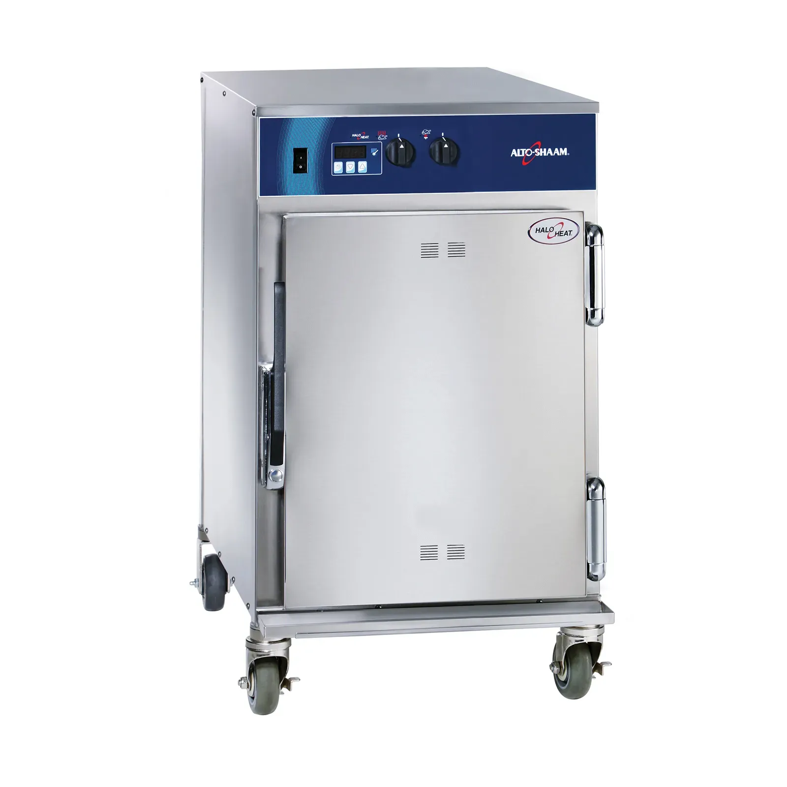 Revolutionize your cooking setup with the Alto-Shaam 500-TH-II Cabinet, Cook / Hold / Oven. This electric oven is designed to deliver exceptional results in a commercial restaurant setting. With a low temperature and a 40 lb. capacity, it can accommodate up to four 12" x 20" x 2-1/2" full-size pans, allowing you to cook large quantities of food at once. The simple controller with an ON/OFF switch makes it easy to operate, while the heavy-duty stainless steel exterior ensures durability and longevity. The stainless steel side racks and wire shelves provide ample space for organizing your dishes, and the exterior drip tray with a removable pan makes cleaning a breeze. Equipped with 2-1/2" casters, including 2 rigid and 2 swivel with brakes, this oven is easy to move around your kitchen. With its EcoSmart technology and certifications from cULus, UL EPH ANSI/NSF 4, CE, IPX3, TUV NORD, and EAC, the Alto-Shaam 500-TH-II is a reliable and efficient choice for any commercial restaurant.