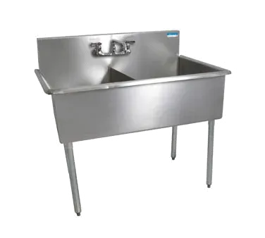 Unleash gastronomic brilliance with the BK Resources, BK8BS-2-18-12 Sink. This two-compartment sink is designed to meet the demands of a busy commercial restaurant kitchen. With its 18 wide x 18 front-to-back x 12" deep compartments, it provides ample space for washing and rinsing dishes, utensils, and cookware. The 8"H backsplash and 8" OC splash mount faucet holes ensure a clean and sanitary work area, while the 1-1/2" rolled edges on the front and sides add durability and prevent spills. Made of 18/430 stainless steel, this sink is built to withstand the rigors of a commercial kitchen. The galvanized steel legs with adjustable high-impact corrosion-resistant feet provide stability and support. Additionally, the sink includes basket drains (BKDR-4) for easy waste disposal. Trust BK Resources for a reliable and efficient sink that will enhance the functionality of your restaurant kitchen.