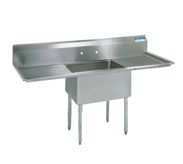 Ignite culinary passion with the BK Resources BKS-1-1620-12-18T Sink, (1) One Compartment. This high-quality sink is designed to meet the demands of a busy commercial restaurant. With its 16" wide x 20" front-to-back x 12" deep compartment, it provides ample space for washing dishes, utensils, and more. The sink also features two left and right 18" drainboards, allowing for efficient drying and organization. The 9" backsplash and 8" OC splash mount faucet holes ensure a clean and sanitary workspace. Made from durable 18/304 stainless steel, this sink is built to withstand the rigors of a commercial kitchen. The galvanized steel legs and adjustable high impact corrosion resistant feet provide stability and durability. NSF certified, this sink meets the highest standards of cleanliness and sanitation. Upgrade your restaurant's kitchen with the BK Resources BKS-1-1620-12-18T Sink, (1) One Compartment.