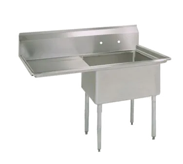 Fuel your restaurant's success with the BK Resources, BKS-1-1824-14-24L Sink. This one-compartment sink is designed to meet the demands of a busy commercial kitchen. With its 18/304 stainless steel construction, it offers durability and resistance to corrosion, ensuring long-lasting performance. The sink features a 24" drainboard on the left, providing ample space for food preparation and dish drying. The 14" deep compartment is perfect for washing large pots, pans, and utensils. The 9" backsplash helps to keep your walls clean and protected from splashes. The sink also includes a basket drain for easy waste disposal. The galvanized steel legs and adjustable high impact corrosion-resistant feet provide stability and support. NSF certified, this sink meets the highest standards of sanitation and hygiene. Upgrade your kitchen with the BK Resources, BKS-1-1824-14-24L Sink and experience enhanced efficiency and functionality.