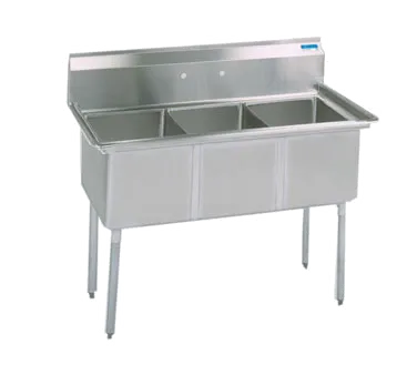 Empower your kitchen staff with the BK Resources, BKS-3-18-12 Sink. This three-compartment sink is designed to meet the demands of a busy commercial restaurant. With its 18 wide x 18 front-to-back x 12" deep compartments, it provides ample space for washing, rinsing, and sanitizing dishes, utensils, and cookware. The 1-1/2" rolled edges on the front and sides ensure durability and prevent spills, while the 9"H backsplash keeps your walls protected. The sink is made of 18/304 stainless steel, ensuring its resistance to corrosion and easy cleaning. It comes with a galvanized steel legs and adjustable high impact corrosion-resistant feet for stability and convenience. The included basket drains (BKDR-4) make it easy to dispose of waste. NSF certified, this sink meets the highest standards of sanitation and hygiene. Upgrade your kitchen with the BK Resources, BKS-3-18-12 Sink and experience enhanced efficiency and cleanliness.