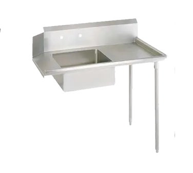 Take your kitchen to the next level with the BK Resources BKSDT-60-R Soiled Dishtable. This straight design dishtable is perfect for commercial restaurant use, offering a spacious 60"W x 30-3/8"D x 46-1/4"H size that can handle the demands of a busy kitchen. The 18/304 stainless steel top is not only durable but also easy to clean, ensuring a sanitary workspace. With a 10"H backsplash and raised rolled edges on the front and side, this dishtable helps prevent spills and splashes, keeping your kitchen clean and safe. The included 20" x 20" x 8" deep pre-rinse sink and 8" OC splash mount faucet holes make it convenient for washing and rinsing dishes. The galvanized steel legs and side bracing provide stability, while the high impact corrosion resistant adjustable bullet feet allow for easy leveling. NSF certified, this dishtable meets the highest standards of quality and safety. Upgrade your kitchen with the BK Resources BKSDT-60-R Soiled Dishtable and experience enhanced efficiency and cleanliness.