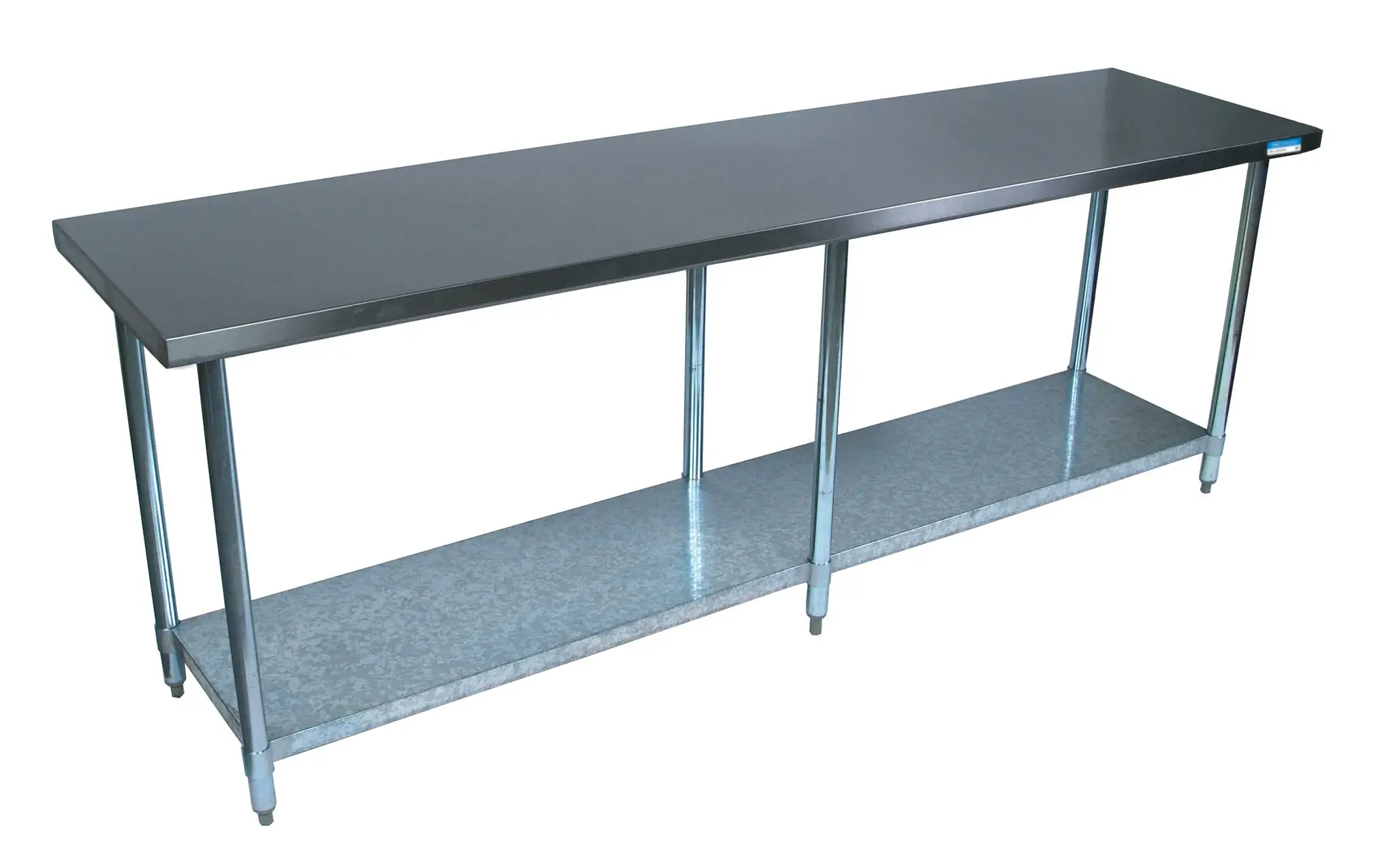 Ignite culinary passion with the BK Resources QVT-9624 Work Table. This stainless steel table is a must-have for any commercial restaurant. With its generous dimensions of 96"W x 24"D x 34-3/4"H, it provides ample space for food preparation, making it perfect for busy kitchens. The 14/304 stainless steel top is reinforced with two 5" C channels, ensuring durability and stability even during the most demanding tasks. The adjustable stainless steel undershelf allows for convenient storage of kitchen essentials, while the six 1-5/8 stainless steel legs provide excellent support. The 1-1/4" adjustable stainless steel feet ensure stability on any surface. This work table is NSF certified, guaranteeing its quality and suitability for commercial use. Trust BK Resources, a reputable vendor in the industry, and invest in the QVT-9624 Work Table for a reliable and efficient addition to your restaurant kitchen.
