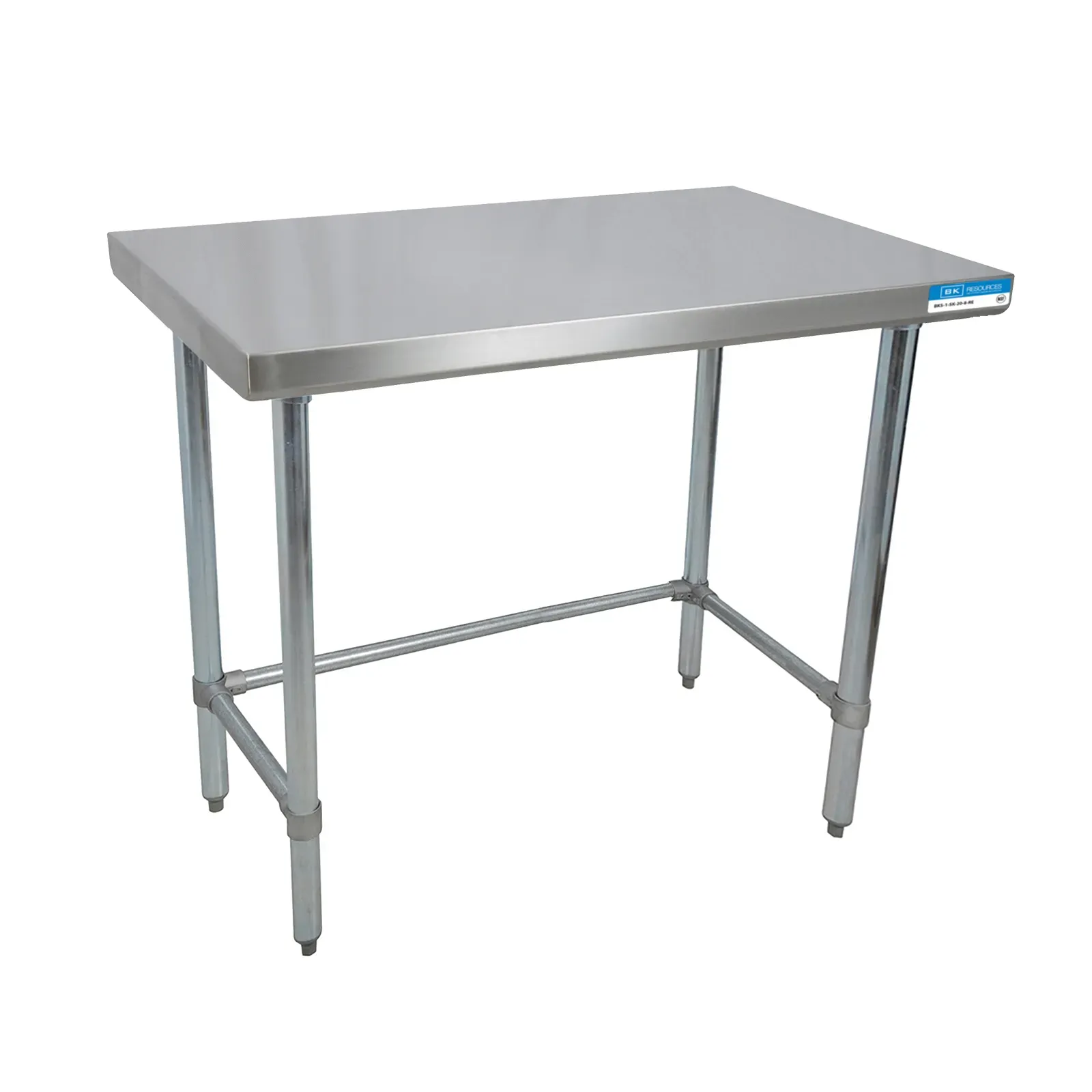 Empower your kitchen staff with the BK Resources SVTOB-7224 Work Table. This stainless steel work table is designed to enhance efficiency and productivity in a commercial restaurant setting. With its 72"W x 24"D size, it provides ample space for food preparation, making it ideal for busy kitchens. The 18/430 stainless steel top with turndown edges on all sides ensures durability and easy cleaning, while the reinforced channels add extra strength. The open base with stainless steel side and rear bracing provides stability and support. The 1-5/8" dia. stainless steel legs and stainless steel over plastic adjustable bullet feet ensure stability on any surface. This work table is NSF certified, guaranteeing its quality and suitability for use in a commercial kitchen. Invest in the BK Resources SVTOB-7224 Work Table and equip your kitchen with a reliable and efficient workstation.