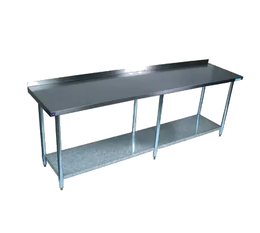 Empower your kitchen staff with the BK Resources VTTR-1884 Work Table. This durable and versatile work table is designed to meet the demands of a busy commercial restaurant. The 18/430 stainless steel top with turndown edges on the front and sides provides a sturdy and easy-to-clean surface for food preparation. Reinforced with channels, this work table can withstand heavy use and is built to last. The 1-1/2" rear riser helps to keep items from falling off the back, while the adjustable galvanized undershelf provides additional storage space. The 1-5/8" dia. galvanized legs with adjustable high-impact corrosion-resistant feet ensure stability and durability. NSF certified, this work table meets the highest standards of cleanliness and sanitation. Upgrade your kitchen with the BK Resources VTTR-1884 Work Table and experience enhanced efficiency and productivity.