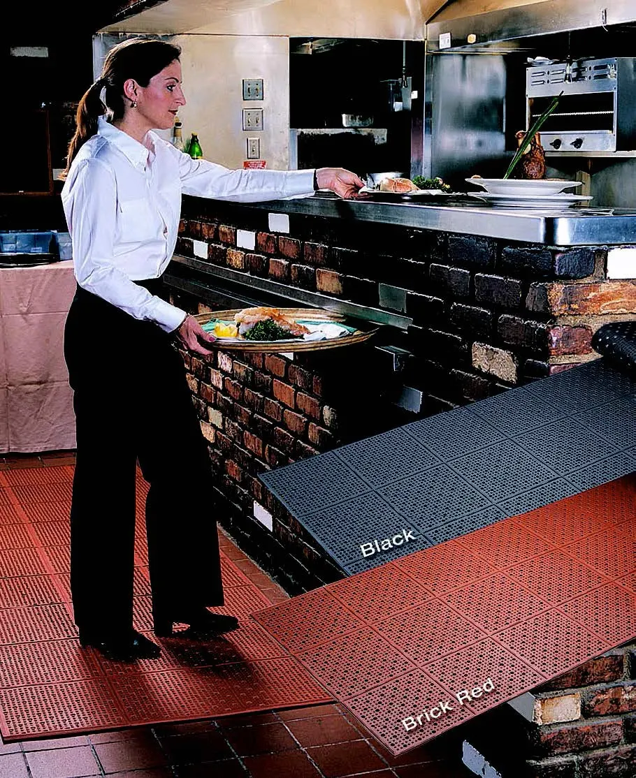 Bring comfort to restaurant settings with the Cactus Mat, 1640R-R364, Floor Mat, Anti-Fatigue. Designed by Cactus Mat, a trusted vendor in the industry, this mat is perfect for commercial restaurant use. The 3/8" thick, reversible design provides ultimate comfort and support for employees who spend long hours on their feet. The knob surface molded rubber offers excellent anti-fatigue and anti-slip properties, ensuring safety in high-traffic areas. With its grease-resistant feature, this mat is ideal for areas with minimal exposure to grease, such as assembly lines, waitress pick-up, and behind counters. The mat's lightweight construction makes it easy to move and clean, while the excellent drainage system keeps the floor dry and safe. Enhance the productivity and well-being of your staff with the Cactus Mat, 1640R-R364, Floor Mat, Anti-Fatigue.