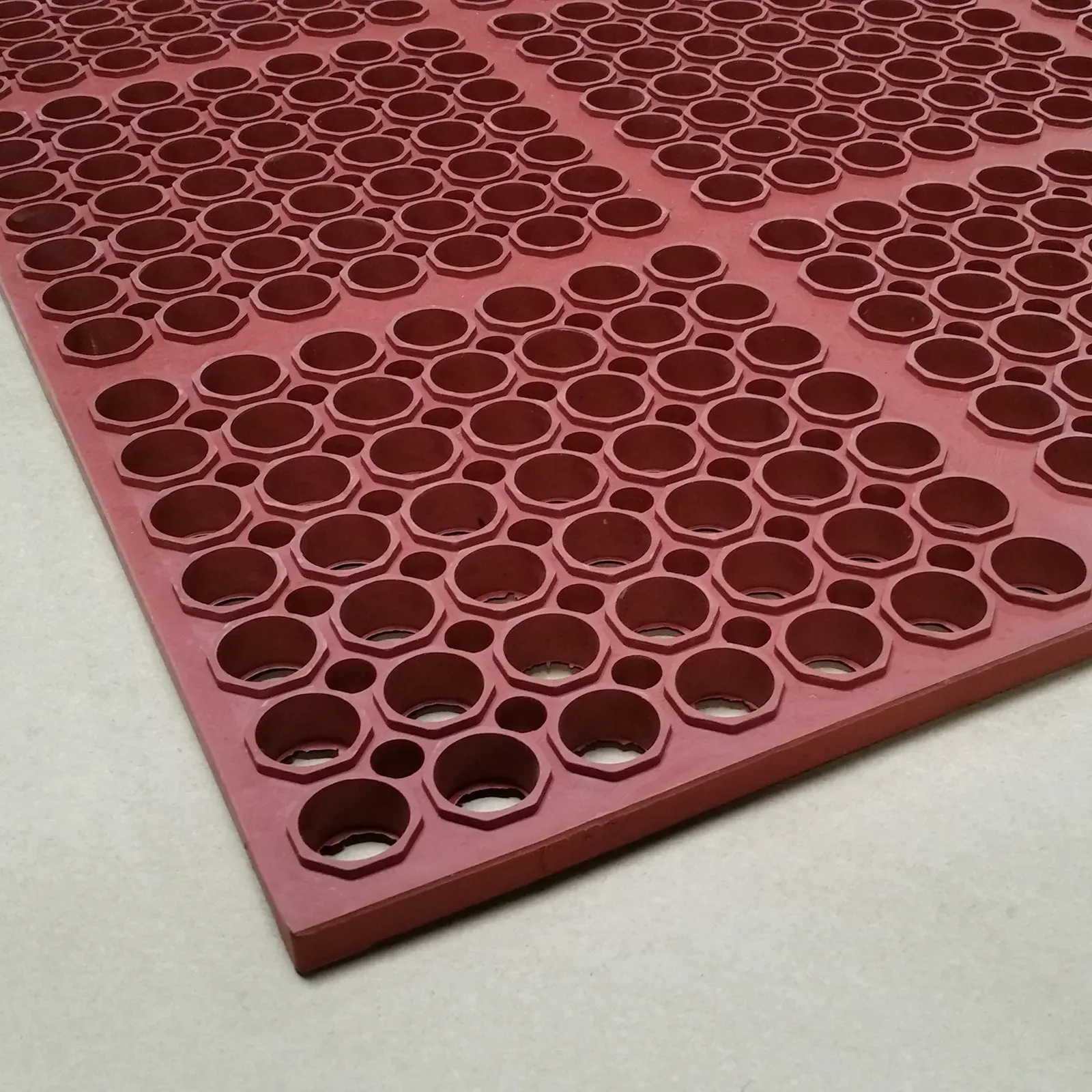 Stay competitive with elegance with the Cactus Mat, 3520-R3, Floor Mat, Anti-Fatigue. Designed specifically for commercial restaurant use, this mat combines functionality and style to enhance your establishment's efficiency and aesthetics. The VIP Floormate Anti-Fatigue & Anti-Slip Mat measures 29" x 39" and is 7/8" thick, providing superior comfort and support for your staff during long hours of standing. Its rubber construction ensures durability and longevity, even in high-traffic areas. The efficient drainage system effectively removes liquid and debris, keeping your floors clean and safe. Perfect for light to moderate grease applications, this mat is grease resistant, making it ideal for restaurant kitchens. With its vibrant red color, it adds a touch of vibrancy to your space. Invest in the Cactus Mat, 3520-R3, Floor Mat, Anti-Fatigue, and elevate your restaurant's performance and ambiance.