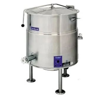 Efficiency and excellence daily. Introducing the Cleveland KDL60 Kettle, Direct Steam, Stationary. Designed for commercial restaurant use, this 60-gallon capacity kettle is a game-changer in the kitchen. Its 2/3 steam jacket design ensures even heat distribution, allowing for precise cooking and reducing the risk of scorching. The open tri-leg base provides stability and easy access for cleaning, while the stainless steel exterior finish adds durability and a sleek look. With a 50 psi rating, this kettle can handle high-pressure steam, making it perfect for busy kitchens. The spring assist cover and 2" tangent draw-off enhance convenience and efficiency during food preparation. Whether you're simmering soups, boiling pasta, or steaming vegetables, the Cleveland KDL60 Kettle delivers outstanding performance and reliability. Elevate your restaurant's cooking capabilities with this top-of-the-line kettle.