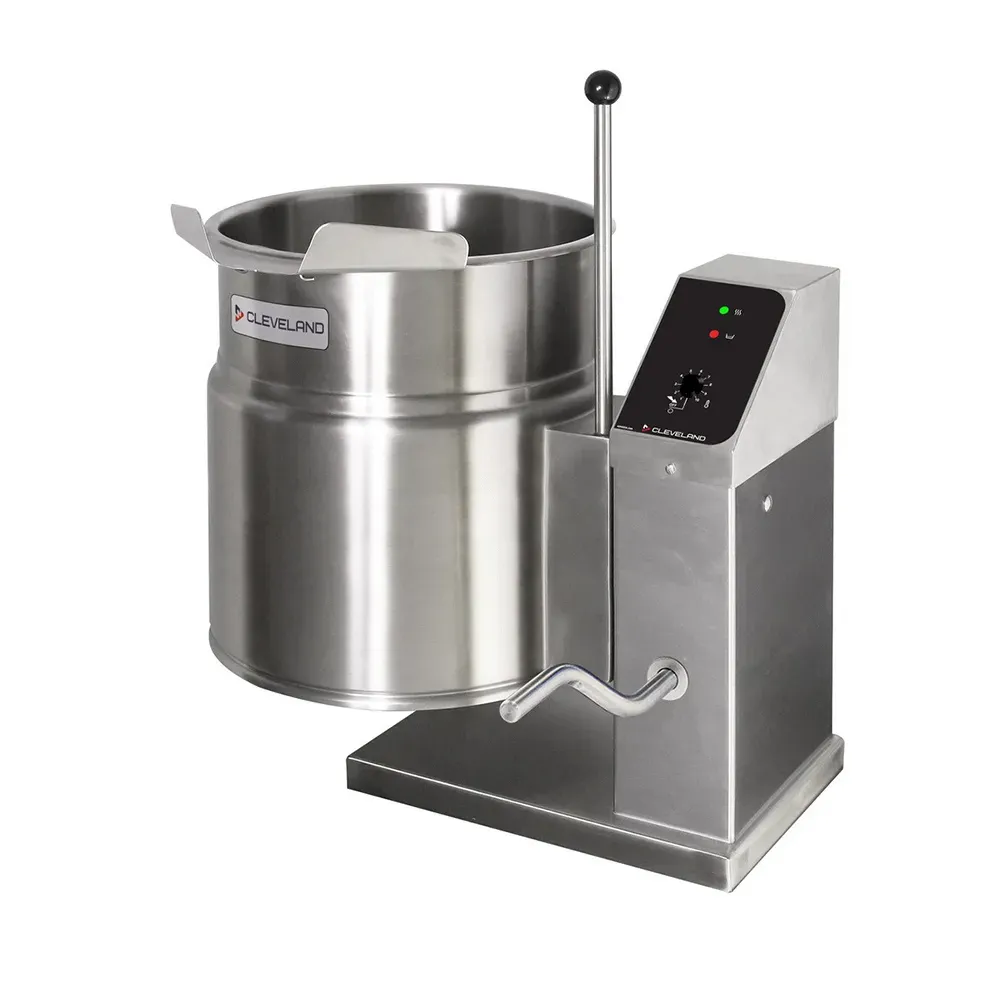 Maximize efficiency in the kitchen with the Cleveland KET12TGB Electric Countertop Kettle. Designed for commercial restaurant use, this 12-gallon (45L) capacity kettle is perfect for high-volume cooking. Its 2/3 steam jacket design ensures even heat distribution, while the self-contained, gear box tilting feature allows for easy pouring and serving. The anti-drip pour spout prevents messy spills, and the IPX6 water protection controls ensure safe operation. With a self-locking marine style safety latch and reinforced rolled rim, this kettle is built to withstand the demands of a busy kitchen. The support console on the right provides stability during use. Made with stainless steel construction and a 316 series stainless steel liner, this kettle is durable and easy to clean. Rated at 50 PSI, it delivers reliable performance every time. Upgrade your kitchen with the Cleveland KET12TGB Electric Countertop Kettle and experience enhanced productivity and convenience.