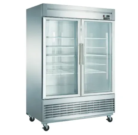 Embrace the cool future with refrigeration technology with the Dukers USA, D55R-GS2, Two Glass Door Refrigerator. This top-of-the-line commercial refrigerator is perfect for any restaurant setting. With its sleek design and durable construction, it is built to withstand the demands of a busy kitchen. The bottom mount feature allows for easy access to the refrigerator's contents, while the two glass doors provide visibility and convenience. Measuring at 55 x 32 x 80 inches, this refrigerator offers ample storage space for all your perishable items. The D55R-GS2 is packed with features such as adjustable shelves, ensuring flexibility in organizing your products. Its energy-efficient design helps reduce utility costs, making it an economical choice for any restaurant owner. Trust Dukers USA, a reputable vendor in the industry, to deliver quality and reliability with this Two Glass Door Refrigerator.
