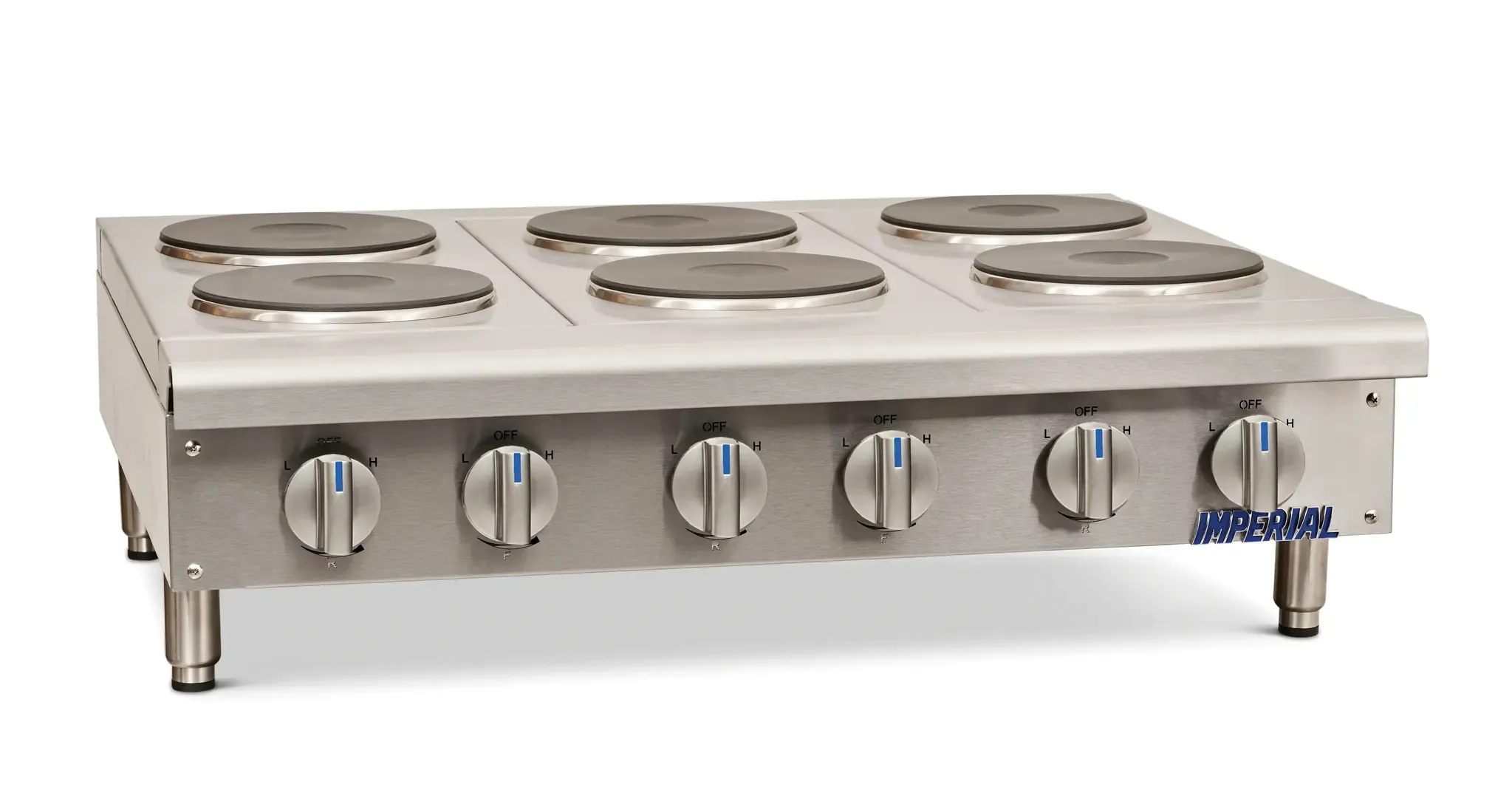 Equip your kitchen for success with the Imperial, IHPA-6-36-E Hotplate, Countertop, Electric. This high-quality hotplate is designed to meet the demands of a commercial restaurant kitchen. With its 36" size and six round plate elements, it provides ample cooking space to prepare multiple dishes simultaneously. The solid top ensures even heat distribution, allowing for consistent cooking results. The infinite controls give you precise temperature control, allowing you to adjust the heat to suit different recipes. Made with a stainless steel front, top, and sides, this hotplate is not only durable but also easy to clean, making it ideal for busy restaurant kitchens. The adjustable feet ensure stability on any countertop surface. Certified by cETLus, ETL-Sanitation, and CE, this hotplate meets the highest safety and sanitation standards. Upgrade your kitchen with the Imperial, IHPA-6-36-E Hotplate, Countertop, Electric and experience efficient and reliable cooking performance.