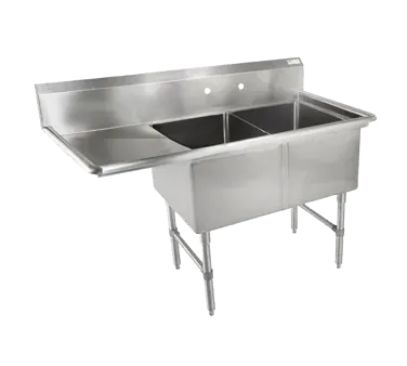 Optimize efficiency with intelligent solutions through the John Boos, 2B244-1D24L Sink. Designed specifically for commercial restaurant use, this two-compartment sink offers exceptional functionality and durability. The sink features two 24" x 24" front-to-back x 14" deep compartments, allowing for efficient dishwashing and food preparation. The 24" left drainboard provides additional workspace, while the 10" high boxed backsplash with a 45° top and 2" return prevents water from splashing onto surrounding surfaces. The sink is constructed from high-quality 16-gauge stainless steel, ensuring long-lasting performance and easy cleaning. Adjustable stainless steel legs and side bracing provide stability, while the adjustable bullet feet allow for easy leveling on uneven floors. With NSF and CSA-Sanitation certifications, this sink meets the highest standards of hygiene and safety. Upgrade your restaurant's efficiency and cleanliness with the John Boos, 2B244-1D24L Sink.