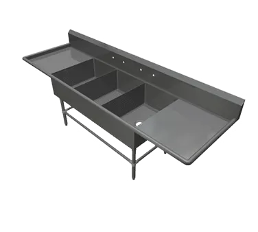 Maximize convenience using efficient tools with the John Boos, 3PB18244-2D18, Sink, (3) Three Compartment. This commercial-grade sink is designed to meet the demands of a busy restaurant kitchen. With its three 18" x 24" x 14" deep compartments, it provides ample space for washing, rinsing, and sanitizing dishes, utensils, and cookware. The sink features a 10" high boxed backsplash with a 45° top and 2" return, ensuring that water stays contained and your walls remain protected. The stainless steel construction guarantees durability and easy cleaning, while the adjustable front and side bracing and bullet feet allow for easy installation and leveling. The sink also comes with a set of splash mount faucet holes with 8" centers, providing flexibility for different faucet options. NSF and CSA-Sanitation certified, this sink is a reliable and essential addition to any commercial restaurant kitchen.
