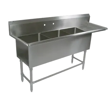 Optimize operations with versatile solutions using the John Boos, 3PB244-1D30R Sink. This three-compartment sink is designed to meet the demands of a commercial restaurant setting, providing efficiency and durability. With an overall size of 106-316W x 29-12D x 44-116H, this sink offers ample space for washing, rinsing, and sanitizing dishes. The three 24W x 24 front-to-back x 14 deep compartments allow for easy organization and separation of different items. The 30 right drainboard provides a convenient area for drying and stacking dishes. The sink features a 10H boxed backsplash with a 45 top and 2 return, ensuring a clean and hygienic workspace. Made of 16300 stainless steel, this sink is built to withstand heavy use and is easy to clean. The adjustable front and side bracing, along with the stainless steel legs and bullet feet, provide stability and flexibility. NSF and CSA-Sanitation certified, this sink guarantees safety and compliance with industry standards. Upgrade your restaurant's kitchen with the John Boos, 3PB244-1D30R Sink and experience enhanced productivity and cleanliness.