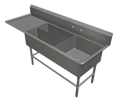 Maximize convenience using efficient tools with the John Boos, 3PBPS3224-1D24L, Sink, (3) Three Compartment. This pro-bowl platter sink is designed to meet the demands of a busy commercial restaurant. With its 3-compartment design, it offers ample space for washing, rinsing, and sanitizing dishes, ensuring a smooth workflow in the kitchen. The sink measures 84-316W x 29-12D x 43H overall, providing a spacious area for all your cleaning needs. The 24W x 24 front-to-back x 12 deep compartment is perfect for larger items, while the two 32W x 12 front-to-back x 12 deep compartments are ideal for smaller utensils. The 24 left drainboard adds convenience, allowing you to dry dishes or prep ingredients. Made from durable 16300 stainless steel, this sink is built to withstand the rigors of a commercial kitchen. It also features adjustable legs and bullet feet for stability and easy leveling. NSF and CSA-Sanitation certified, this sink ensures the highest standards of cleanliness and hygiene. Upgrade your restaurant's kitchen with the John Boos, 3PBPS3224-1D24L, Sink, (3) Three Compartment.