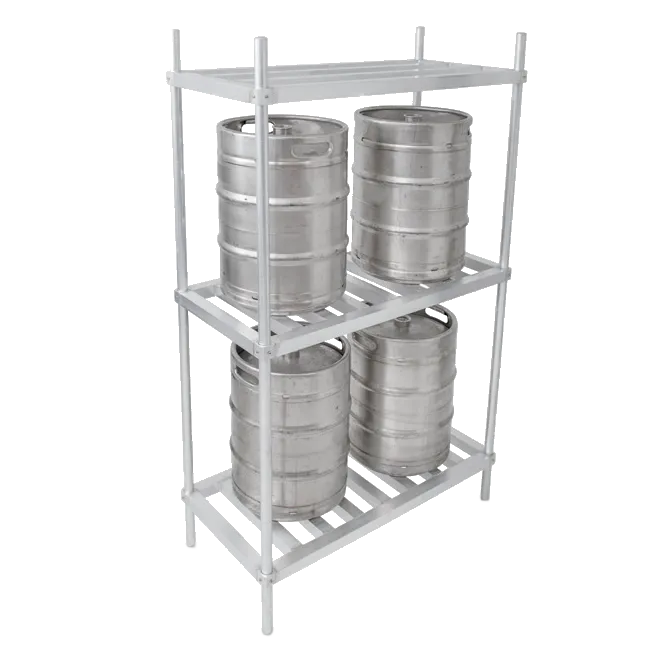 Maximize convenience using efficient tools with the John Boos ALKR-2042 Keg Storage Rack. Designed specifically for commercial restaurant use, this keg rack offers a practical solution for storing and organizing kegs. With its three shelves, it can accommodate up to four kegs, allowing you to keep your inventory easily accessible and well-organized. The mid and bottom shelves are constructed of 1-3/4 square tubing, running front-to-back, with a load rating of 60 lb/ft, ensuring durability and stability. The top shelf, made of 1-3/4 square tubing running left-to-right, has a load rating of 15 lb/ft. Made of aluminum, this rack is lightweight yet sturdy, making it easy to move and position as needed. The 1-5/16 diameter posts provide additional support and stability. Invest in the John Boos ALKR-2042 Keg Storage Rack and streamline your keg storage process in your commercial restaurant.