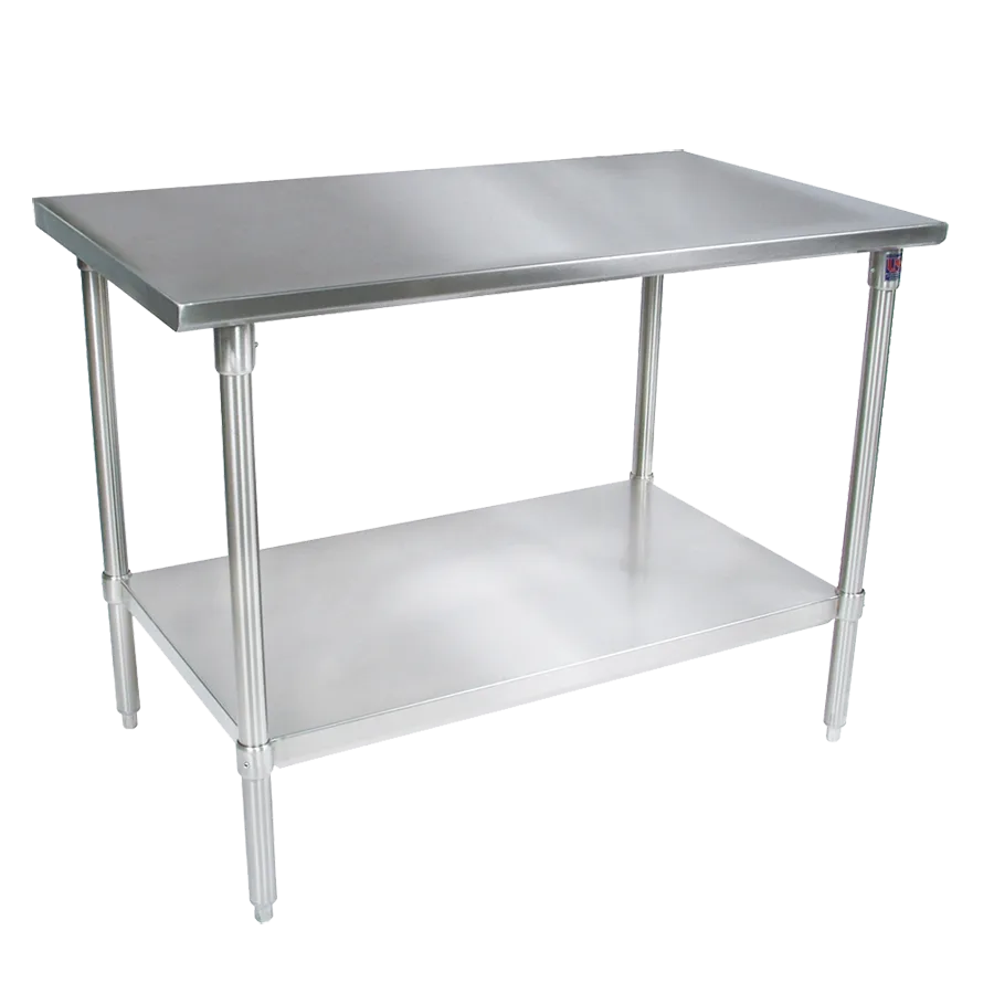 Enhance workflow with intelligent solutions through the John Boos ST4-2436SSK Work Table. Designed specifically for commercial restaurant use, this work table is a game-changer in the kitchen. With its 36W x 24D stainless steel flat top, it provides a spacious and durable surface for food preparation, ensuring efficiency and cleanliness. The Stallion Safety Edge front and back, along with the 90 turndown on the sides, prevent spills and accidents, keeping your staff safe. The stainless steel legs and adjustable undershelf offer stability and ample storage space for utensils, ingredients, and equipment. Equipped with adjustable bullet feet, this work table can be easily leveled on any surface. NSF and CSA-Sanitation certified, it meets the highest standards of hygiene and safety. Upgrade your restaurant's productivity and functionality with the John Boos ST4-2436SSK Work Table.