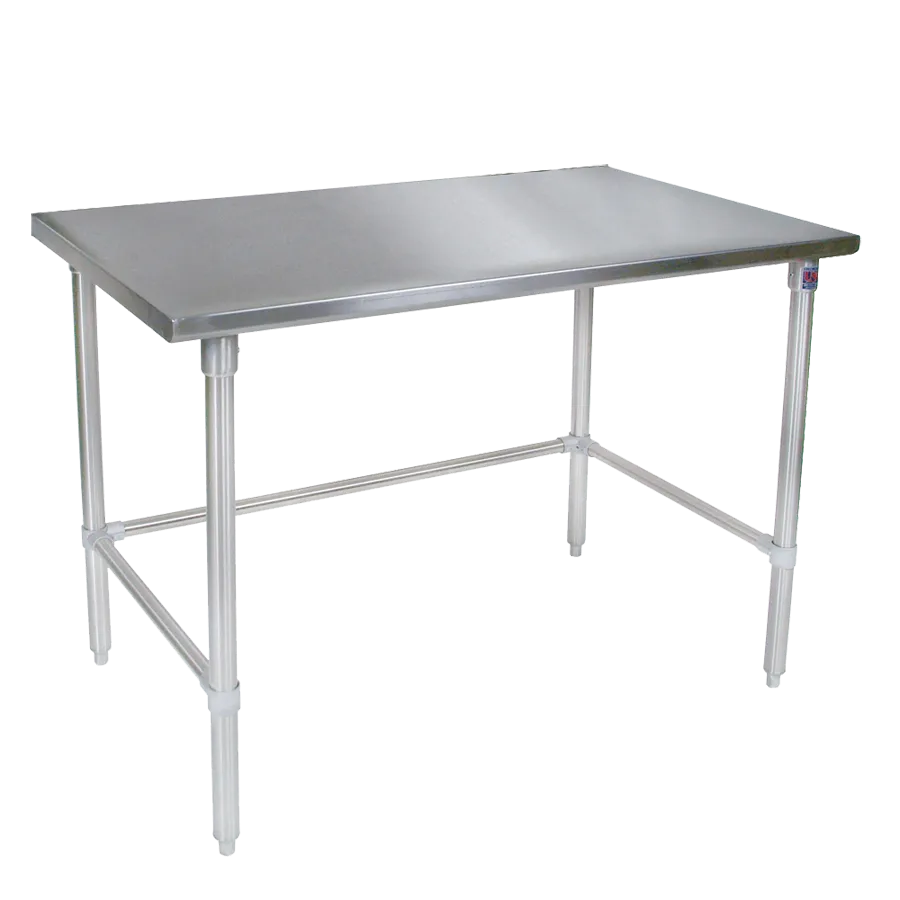 Enhance workflow with efficient tools using the John Boos ST6-24108SBK Work Table. Designed for commercial restaurant use, this work table is a valuable addition to any kitchen. With its 16300 stainless steel flat top, it provides a durable and hygienic surface for food preparation. The Stallion Safety Edge front and back ensure safety and prevent accidents. The 90 turndown on the sides helps contain spills and keeps the workspace clean. The stainless steel legs, side, and rear adjustable bracing provide stability and support for heavy-duty tasks. The adjustable bullet feet allow for easy leveling on uneven surfaces. This work table is NSF and CSA-Sanitation certified, guaranteeing its quality and suitability for commercial use. With a width of 108 inches and a depth of 24 inches, it offers ample space for various kitchen activities. Upgrade your restaurant's efficiency with the John Boos ST6-24108SBK Work Table.