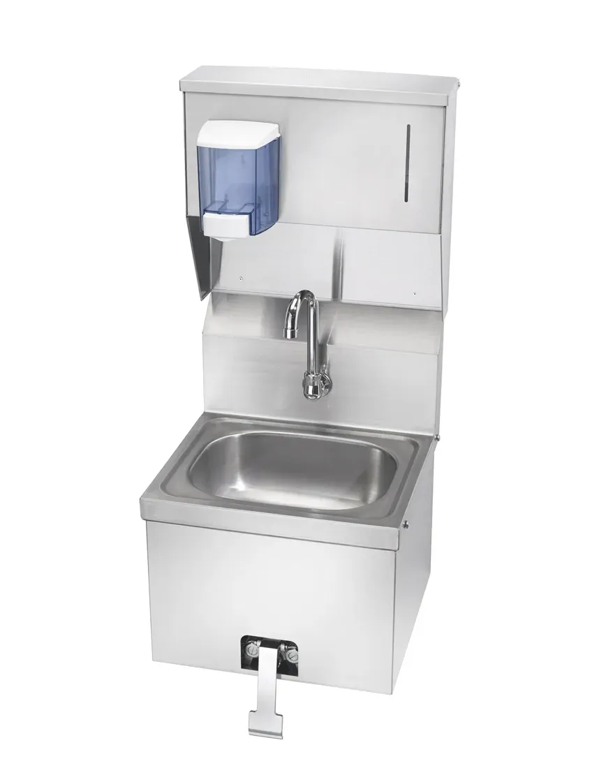 Culinary excellence in every dish begins with the right tools, and the Krowne Metal HS-16 Hand Sink is an essential addition to any commercial restaurant. This 16" wide hand sink is designed with convenience and efficiency in mind. Equipped with a knee valve, soap dispenser, and towel dispenser, it offers a seamless handwashing experience for your staff, ensuring optimal hygiene standards are met. The knee valve allows for hands-free operation, reducing the risk of cross-contamination. The built-in soap and towel dispensers provide easy access to essential cleaning supplies, promoting cleanliness and preventing the spread of germs. With its durable construction and compact design, this hand sink is perfect for busy restaurant kitchens where space is at a premium. Trust Krowne Metal, a reputable vendor in the industry, to deliver a high-quality product that meets your restaurant's needs. Upgrade your kitchen with the Krowne Metal HS-16 Hand Sink and elevate your culinary operations to new heights.