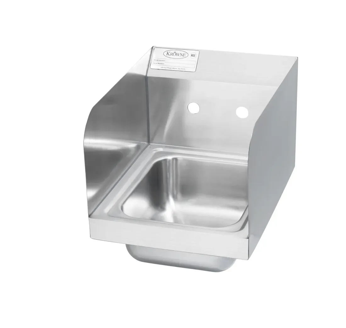Cook with confidence with the Krowne Metal HS-30-LF Hand Sink. This 12" wide hand sink is designed specifically for commercial restaurant use, ensuring that your kitchen meets all health and safety regulations. The hand sink comes with side splashes, providing a convenient and hygienic space for your staff to wash their hands. With its compact size, it can easily fit into any kitchen layout without taking up too much space. Although the faucet is not included, this allows you to choose a faucet that best suits your needs. Whether you're running a busy restaurant or a small cafe, the Krowne Metal HS-30-LF Hand Sink is a reliable and essential addition to your kitchen.