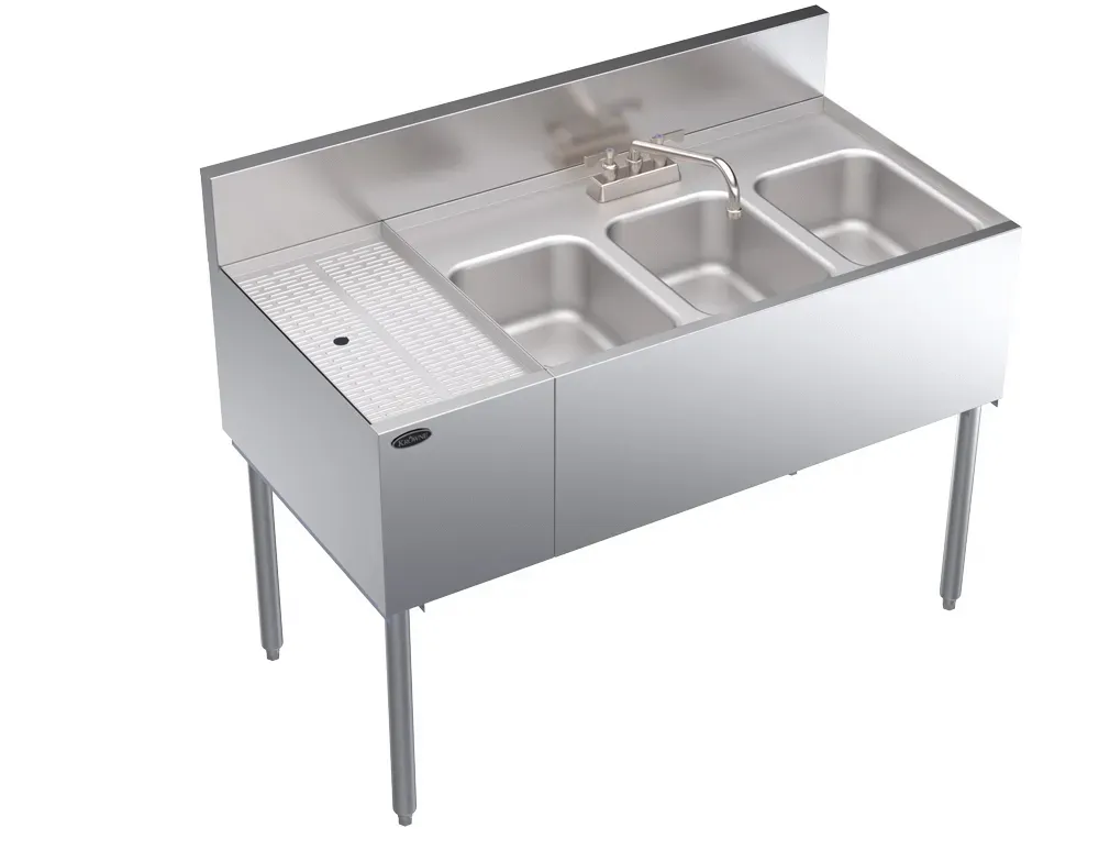 Craft culinary wonders with the Krowne Metal KR24-43R Bar Sink. This 24" x 48" 3-bay sink is the perfect addition to any commercial restaurant kitchen. Designed by Krowne Metal, a trusted name in the industry, this bar sink is built to withstand the demands of a busy kitchen. The 3-bowl design allows for efficient multitasking, making it easy to wash, rinse, and sanitize dishes all in one place. The 24" draiboard provides additional workspace for food preparation or drying dishes. With its durable construction and spacious design, this bar sink is ideal for high-volume establishments. Whether you're running a bustling bar or a bustling restaurant, the Krowne Metal KR24-43R Bar Sink is a must-have for any commercial kitchen.