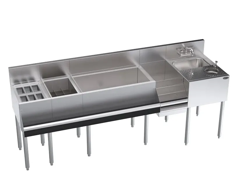 Optimize your kitchen efficiency with the Krowne Metal KR24-MX84-10 Mixology Station. This Royal Series 84" workstation is designed to streamline your cocktail preparation process, making it perfect for commercial restaurant use. With its 10 circuit cold plate, you can keep your ingredients chilled and ready for mixing, ensuring that your drinks are served at the perfect temperature every time. The 84"W x 24"D underbar design provides ample space for bartenders to work, allowing for efficient workflow and minimizing downtime. The Krowne Metal Mixology Station is packed with features that cater specifically to the needs of a busy restaurant environment. Whether you're serving up classic cocktails or experimenting with new concoctions, this mixology station is a must-have addition to your kitchen. Trust Krowne Metal to deliver high-quality, durable equipment that will enhance your restaurant's bar operations.