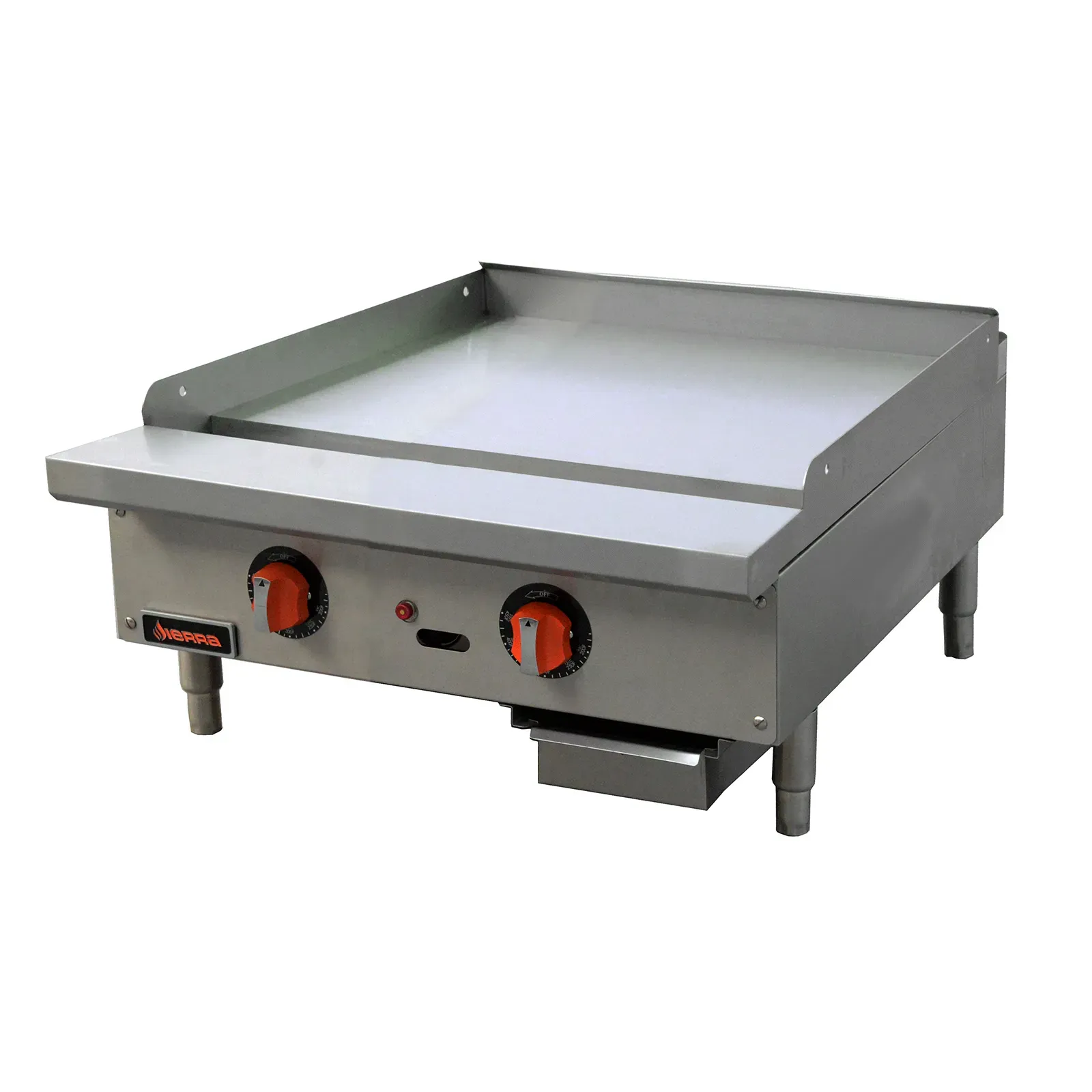 Upgrade operations with clever options through the MVP, SRTG-24, Griddle, Gas, Countertop. This versatile griddle is designed to enhance efficiency and productivity in commercial restaurant settings. With its 24"W polished steel griddle plate, this unit provides a spacious cooking surface for preparing a variety of dishes. The two 30,000 BTU U-shaped burners deliver powerful heat distribution, ensuring even cooking results. Equipped with thermostatic controls and standing pilots, this griddle offers precise temperature management and quick ignition. The 5-7/10" landing edge on the front and 4" grease trough make it easy to handle and maintain cleanliness. The removable grease tray with a weep hole simplifies the cleaning process, while the stainless steel construction ensures durability and longevity. With adjustable stainless steel feet, this griddle can be easily leveled on any countertop. Upgrade your restaurant operations with the MVP, SRTG-24, Griddle, Gas, Countertop and experience enhanced cooking performance and efficiency.