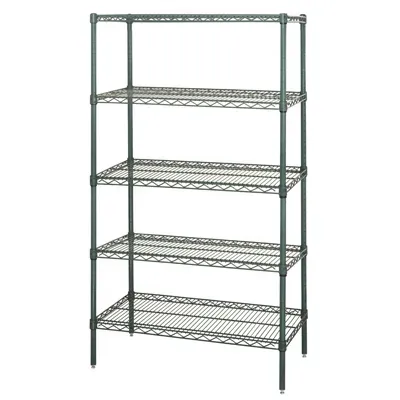 Master Your Kitchen Space with the Quantum Foodservice WR74-1848P-5 Shelving Unit. This versatile shelving unit from Quantum Foodservice is designed to optimize your restaurant's storage capacity. With a 800 lb. capacity per shelf, this unit can handle heavy loads of ingredients, supplies, and equipment. The green epoxy antimicrobial finish ensures a hygienic storage environment, making it suitable for dry, high humidity, wet, or walk-in cooler applications. The NSF approval guarantees the unit's compliance with strict health and safety standards. The WR74-1848P-5 shelving unit comes with five wire shelves, four posts, twenty split sleeves, four post levelers, and four post inserts, providing ample space for organizing your kitchen essentials. With a 15-year warranty, you can trust in the durability and longevity of this shelving unit. Maximize your restaurant's efficiency and organization with the Quantum Foodservice WR74-1848P-5 Shelving Unit.