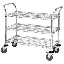 Equip Your Kitchen for Success with the Quantum Foodservice WRC-1842GY-3 Cart, Bussing Utility Transport. This versatile cart is designed to meet the demands of a busy commercial restaurant. With its durable construction and impressive capacity of 1200 lbs, it can easily transport heavy loads of dishes, supplies, and equipment. The cart features three wire shelves that provide ample storage space, while the open base allows for easy access and cleaning. The gray epoxy antimicrobial finish not only adds a sleek look but also helps maintain a hygienic environment. Maneuvering the cart is a breeze thanks to the four 5" polyurethane swivel casters, two of which have brakes for added stability. The "U" shaped handles ensure a comfortable grip while pushing or pulling the cart. NSF approved, this cart is a reliable and essential addition to any commercial kitchen.