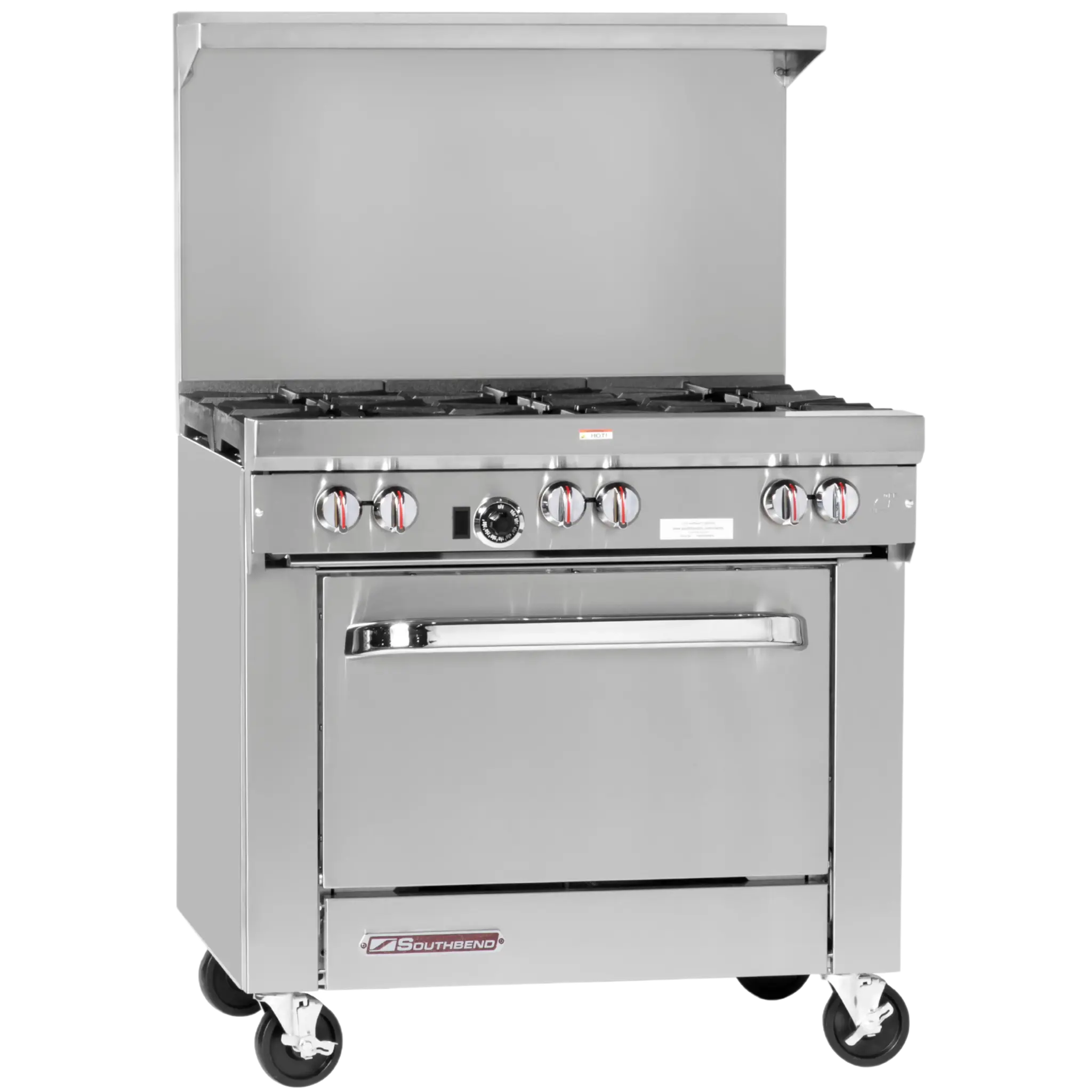Revolutionize your cooking setup with the Southbend S36D-3T Range, a must-have for any commercial restaurant. This 36" gas range is designed to meet the demands of a busy kitchen, offering exceptional performance and durability. The thermostatic controls allow for precise temperature regulation, ensuring consistent cooking results every time. The griddle provides a versatile cooking surface, perfect for preparing a wide range of dishes. With its hinged lower valve panel, maintenance and cleaning are a breeze. The stainless steel construction of the front, sides, and shelf not only adds a sleek and professional look to your kitchen but also ensures long-lasting durability. The range comes with a standard oven, complete with a snap action thermostat and one rack for all your baking needs. With a powerful 99000 BTU, this range delivers the heat you need to cook efficiently and quickly. Trust Southbend, a reputable brand known for its quality and reliability, to enhance your restaurant's cooking capabilities.