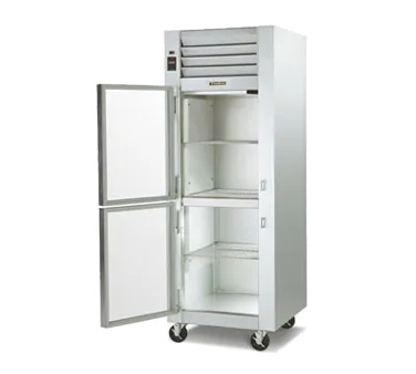 Upgrade your kitchen tools with the Traulsen Dealers Choice Display Refrigerator. This one-section refrigerator, with a spacious 23.67 cu. ft. capacity, is designed to meet the high demands of a bustling restaurant environment. Featuring two half-height glass doors hinged on the left, it offers easy access and visibility to your stored items, making it perfect for quick service and efficient kitchen operations.