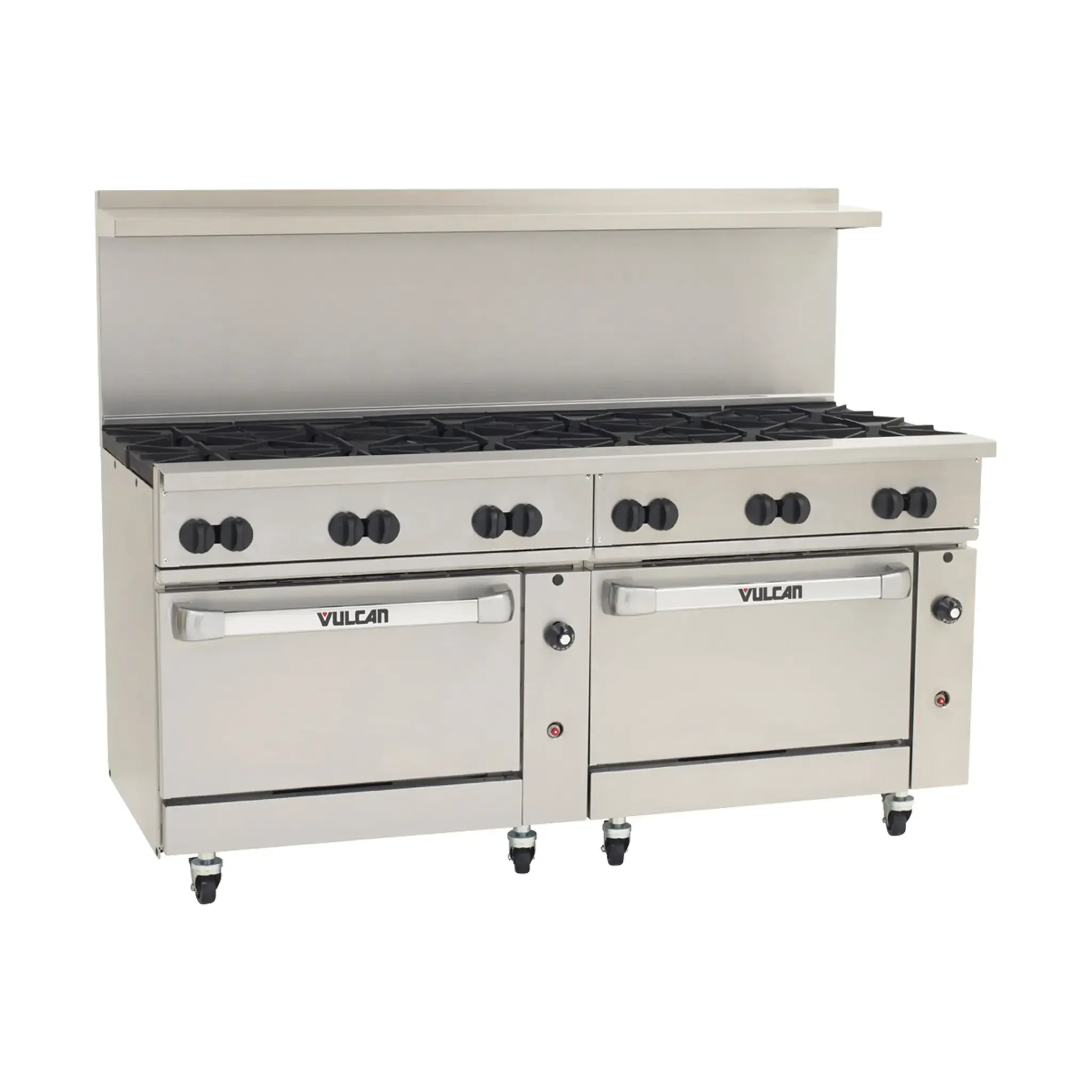 Cooking at its finest with the Vulcan 72SC-12B Range, 72" Restaurant, Gas. This top-of-the-line restaurant range from Vulcan is designed to meet the demands of a busy commercial kitchen. With 12 powerful 30,000 BTU burners, each equipped with lift-off burner heads, you'll have the flexibility and precision to cook multiple dishes simultaneously. The range also features a standard oven on the left and a convection oven on the right, allowing you to bake, roast, and broil with ease. Made with a stainless steel front, sides, backriser, and high shelf, this range is not only durable but also easy to clean. The fully MIG welded frame ensures stability and longevity, while the 6" adjustable legs provide flexibility in installation. With a total BTU of 430,000, this range delivers exceptional cooking performance. CSA and NSF certified, the Vulcan 72SC-12B Range is the perfect addition to any commercial restaurant kitchen.