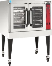 Master the art of flavor with the Vulcan VC4GD Convection Oven. This gas-powered, single-deck oven is perfect for commercial restaurant use. With solid state controls and an electronic spark igniter, this oven is easy to operate and ensures consistent cooking results. The 60-minute timer allows for precise cooking times, while the (5) nickel plated racks provide ample space for multiple dishes. The stainless steel construction of the front, top, sides, and door with window not only gives this oven a sleek and professional look but also makes it durable and easy to clean. With a powerful 50000 BTU burner, this oven delivers quick and efficient cooking performance. It is NSF, CSA Star, CSA Flame, and ENERGY STAR certified, guaranteeing its quality and energy efficiency. Upgrade your restaurant kitchen with the Vulcan VC4GD Convection Oven and elevate your culinary creations to new heights.