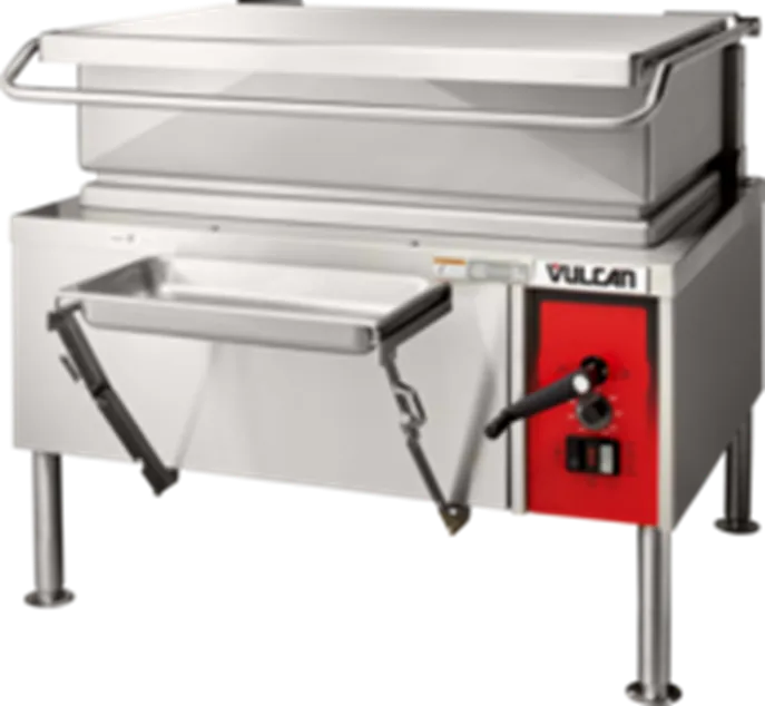 Elevate your cuisine with the Vulcan VE40 Tilting Skillet Braising Pan. This electric braising pan is designed to meet the demands of a commercial restaurant kitchen. With a 40-gallon capacity and 16 kW FastBatch embedded heating technology, this braising pan ensures efficient and even cooking of large quantities of food. The 9" deep stainless steel pan features gallon markings, a pouring lip, and a removable strainer, making it easy to measure, pour, and strain ingredients. The spring assist cover with a drip edge keeps your food moist and flavorful, while the pan holder provides convenience during cooking. The water-tight solid state controls offer precise temperature regulation, ensuring consistent results every time. The VE40 also includes a faucet bracket for added versatility. With its durable construction and adjustable stainless steel legs, this Vulcan braising pan is a reliable and versatile addition to any commercial kitchen.