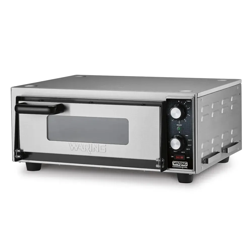Elevate your cuisine with the Waring WPO100 Pizza Oven. This medium-duty, countertop oven is designed to meet the demands of a commercial restaurant. Its ceramic deck can fit a 14" pizza, making it perfect for serving up delicious, crispy pies. The 3.5" high chamber opening allows for easy access and monitoring of your creations. With heating elements both above and below the deck, you can ensure even and consistent cooking every time. The 15-minute timer and temperature settings ranging from 280 F to 600 F give you full control over your cooking process. The tempered glass door and oven light allow you to keep an eye on your pizzas without opening the oven, preserving heat and energy. The removable pizza deck makes cleaning a breeze. With its compact size of 23"W x 10"H x 18"D, this pizza oven is a space-saving solution for any commercial kitchen. Trust the Waring WPO100 Pizza Oven to deliver exceptional results and take your pizza game to the next level.